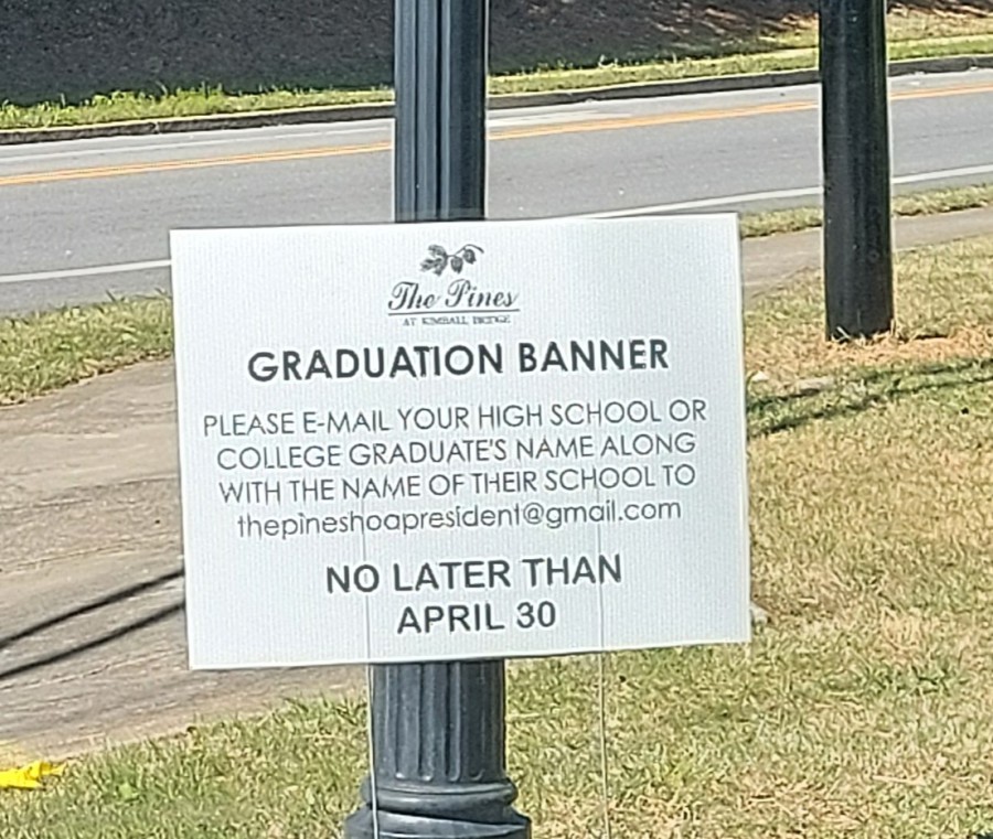 The Graduation Banner is up at the front entrance.